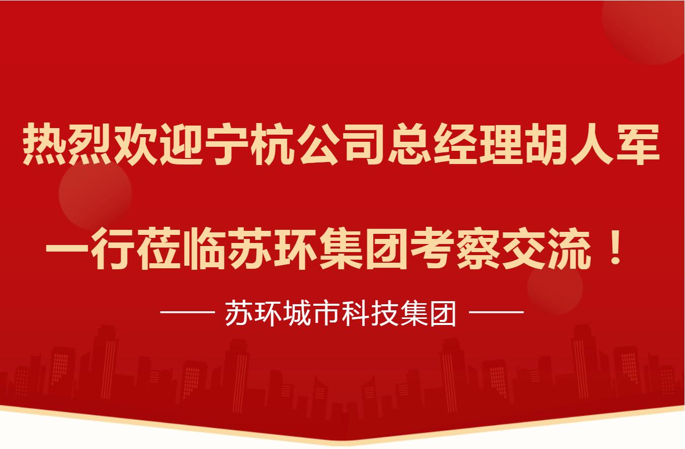 7月12日上午10點,江蘇寧杭文化旅游發展有限公司總經理胡人軍協同總經理助理呂黎、主管邵敏、寧杭公司太湖服務區主任虞平、寧杭公司丁村服務區管理員毛慧文、寧杭公司荷葉山服務區管理員周鵬鵬一行蒞臨蘇環集團進行考察指導。蘇環集團董事長何學斌、總經理孫振城等領導熱情會見。